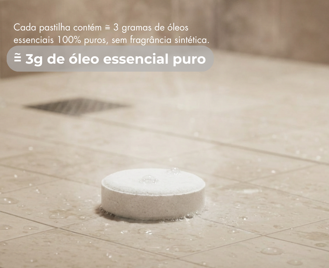 Desenvolvida com óleo essencial de camomila, cada pastilha cria um ambiente de conforto imediato. A efervescência controlada libera gradualmente o aroma — floral, leve e calmante — reduzindo a tensão e promovendo uma sensação de descanso mental que você sente em segundos.