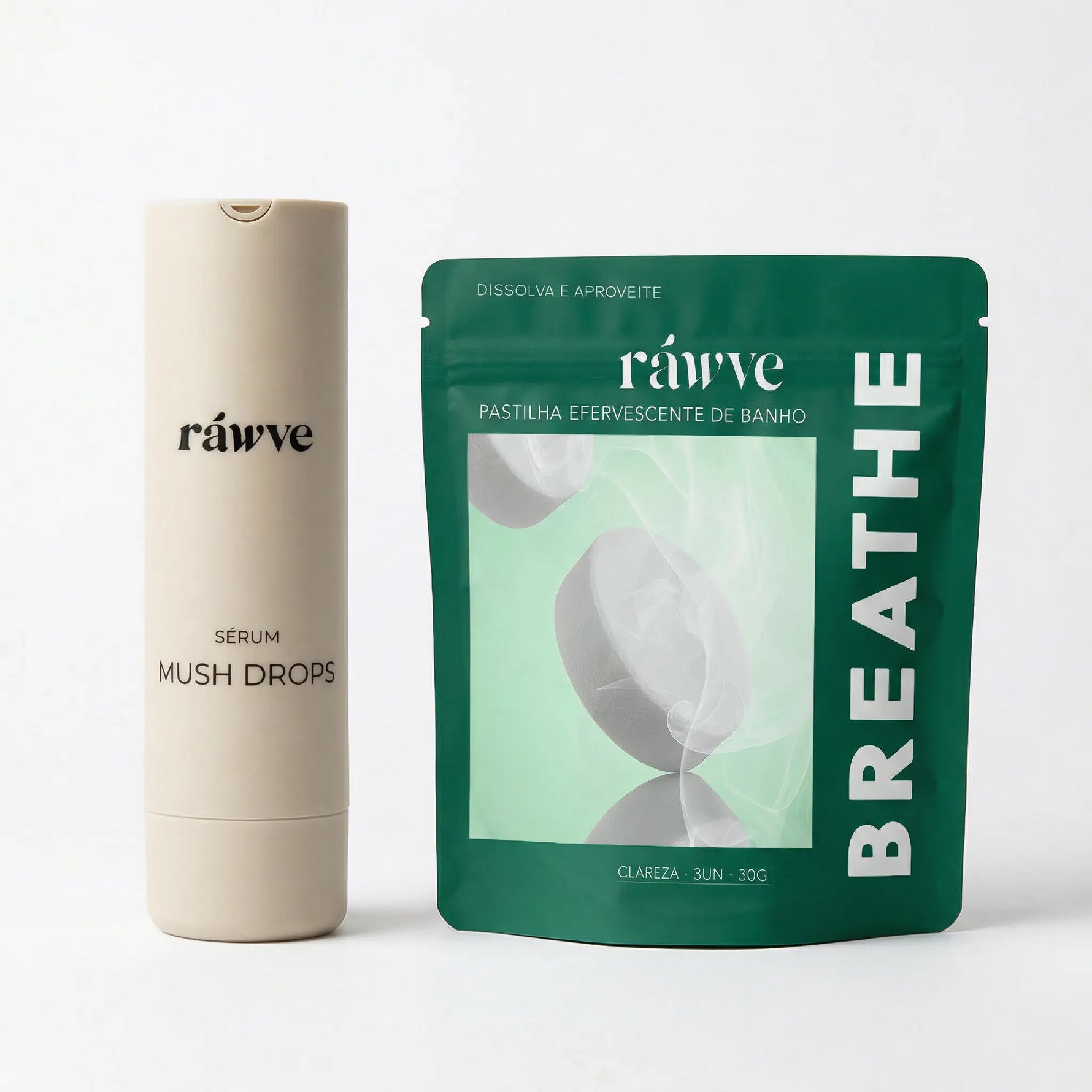 Produtos vêm em embalagens individuais dentro de caixa RÁWVE.